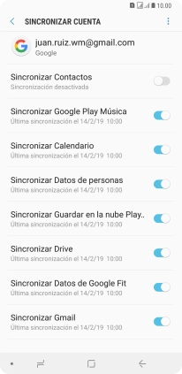 Pulsa el indicador junto a "Sincronizar Contactos" para activar la función.