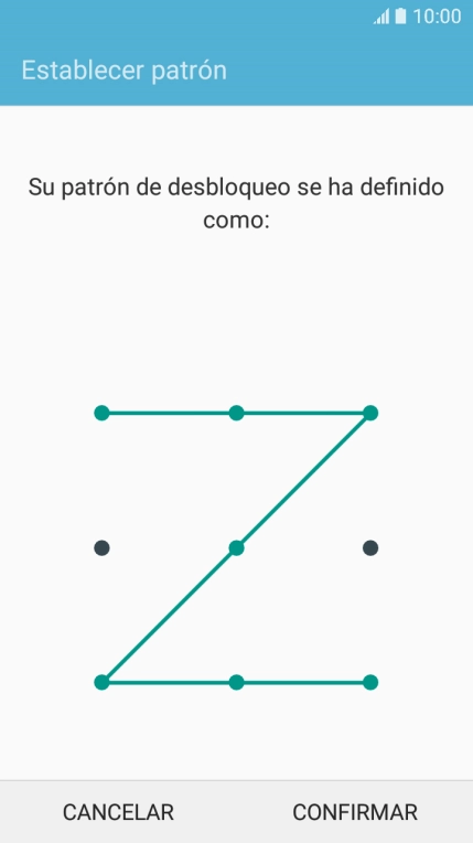 Desliza el dedo por la pantalla para unir por lo menos cuatro puntos y pulsa CONTINUAR.