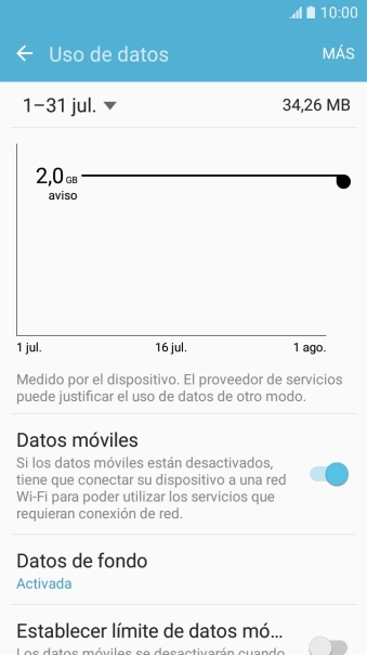 Pulsa el indicador junto a "Datos móviles" para activar o desactivar la función.