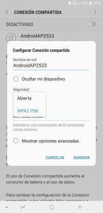 Pulsa WPA2 PSK para proteger la conexión wifi con una contraseña.