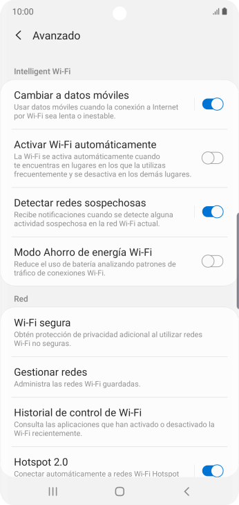 Pulsa el indicador junto a "Cambiar a datos móviles" para activar o desactivar la función.