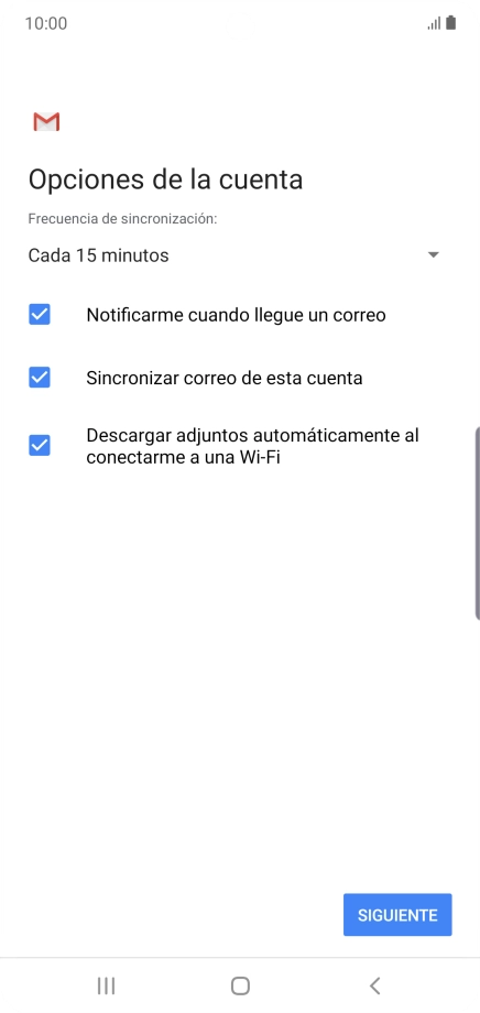 Pulsa en el campo junto a "Sincronizar correo de esta cuenta" para activar la función.