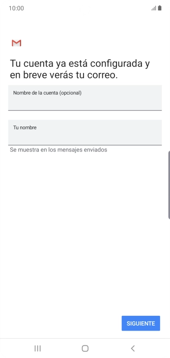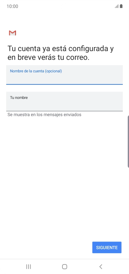 Si aparece en la pantalla esta imagen, tu cuenta de correo electrónico ha sido reconocida y configurada automáticamente. Sigue las indicaciones de la pantalla para introducir más información y terminar la configuración.