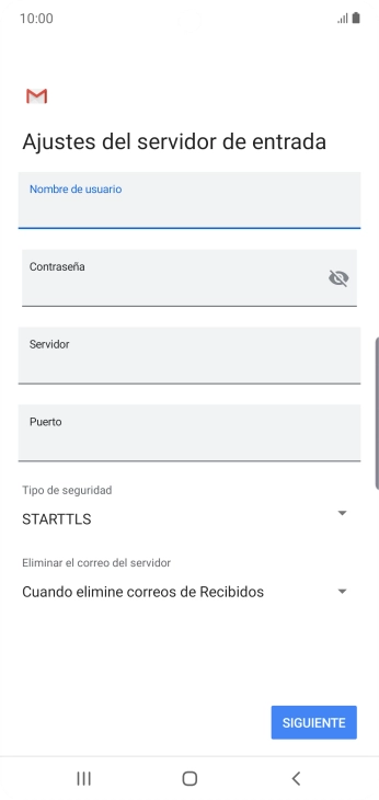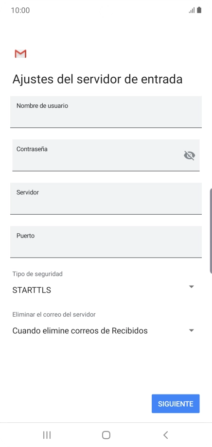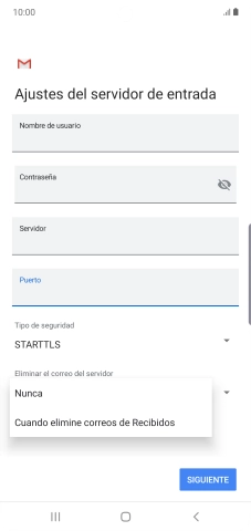 Pulsa Cuando elimine correos de Recibidos para eliminar los correos electrónicos del servidor cuando los borras del teléfono.