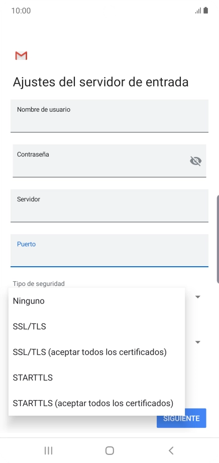 Pulsa la lista desplegable junto a "Tipo de seguridad".