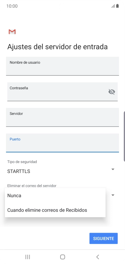 Pulsa Nunca para conservar los correos electrónicos en el servidor cuando los borras del teléfono.