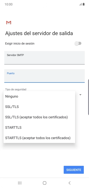 Pulsa la lista desplegable bajo "Tipo de seguridad".