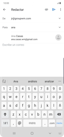 Pulsa en el campo de escritura y escribe el texto del correo electrónico.