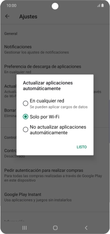 Para activar la actualización automática de apps a través de wifi, pulsa Solo por Wi-Fi.