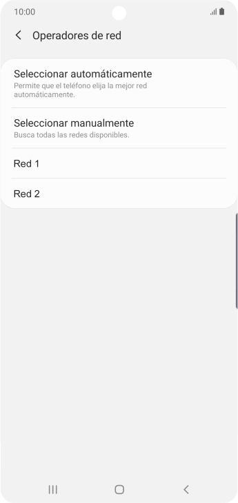 Pulsa Seleccionar manualmente y espera mientras el teléfono está buscando redes.