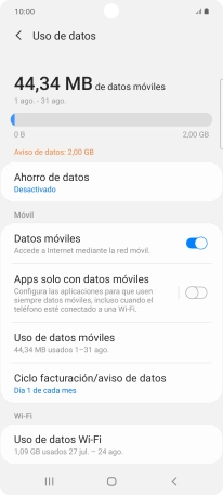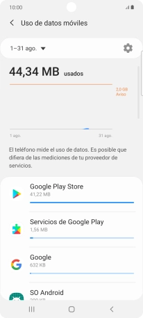 Puedes ver cuántos datos móviles has utilizado, por ejemplo, cuando has utilizado el navegador de Internet o cuando has enviado y recibido correo electrónico.