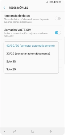 Selecciona el tipo de red en el Samsung Galaxy Note9 Android 8.1