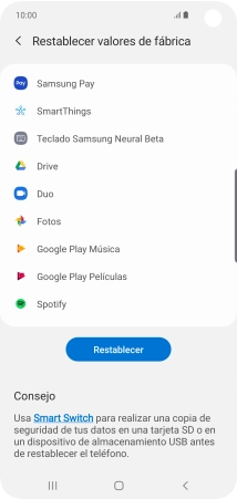 Restablece la configuración predeterminada del Samsung Galaxy S10 Android 9.0