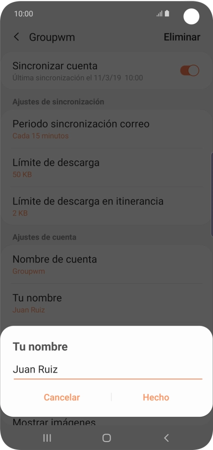 Introduce el nombre deseado de la cuenta de correo electrónico y pulsa Hecho.