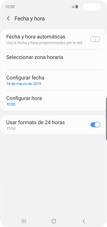 Pulsa el indicador junto a "Fecha y hora automáticas" para activar la función.