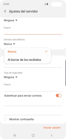 Pulsa Nunca para conservar los correos electrónicos en el servidor cuando los borras del teléfono.