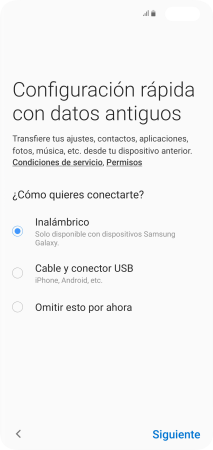Puedes transferir el contenido de otro teléfono cuando activas tu teléfono por primera vez y cuando lo has restablecido. Cuando aparezca en la pantalla del teléfono esta imagen, ya está listo para la transmisión del contenido del otro teléfono.