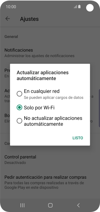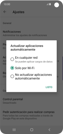 Para activar la actualización automática de apps a través de wifi, pulsa Solo por Wi-Fi.