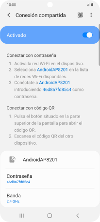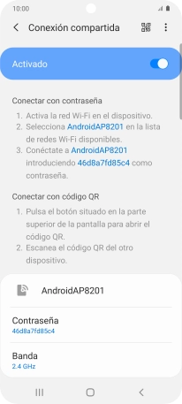 Pulsa el indicador bajo "Conexión compartida" para activar la función.
