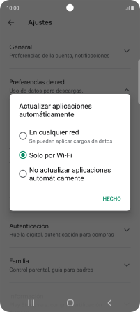 Para activar la actualización automática de apps a través de wifi, pulsa Solo por Wi-Fi.