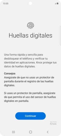Sigue las indicaciones de la pantalla para crear una huella digital como código de seguridad.