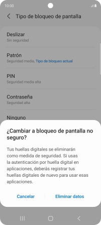 Pulsa Tipo de bloqueo de pantalla e introduce el código de seguridad extra que has creado anteriormente.
