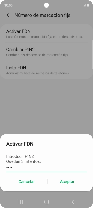 Pulsa Desactivar números de marcación fija.
