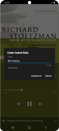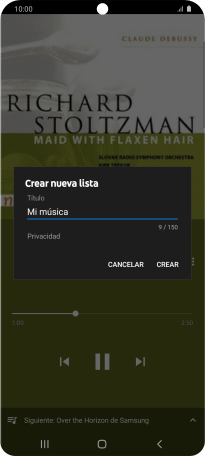 Introduce el nombre deseado de la lista de reproducción y pulsa CREAR.