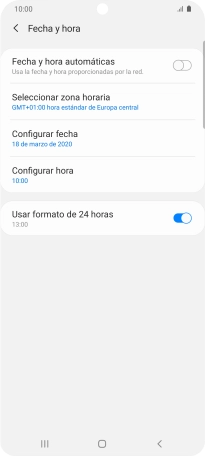 Pulsa el indicador junto a "Fecha y hora automáticas" para activar la función.