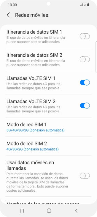 Pulsa el indicador junto a "Itinerancia de datos ‹SIM›" para activar o desactivar la función.