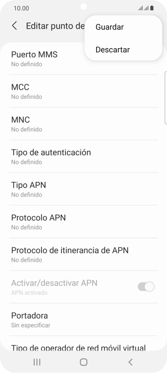 Pulsa en el campo junto a la conexión de datos para activarla.