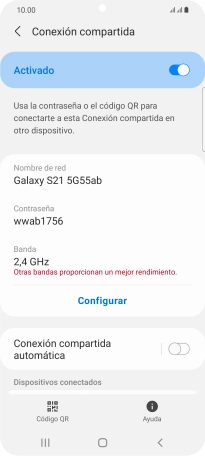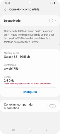Pulsa el indicador bajo "Conexión compartida" para activar la función.