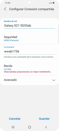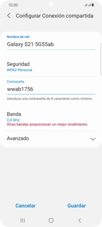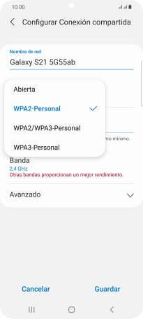 Pulsa WPA2-Personal para proteger la conexión Wi-Fi con una contraseña.