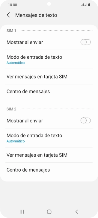 Pulsa Centro de mensajes bajo la tarjeta SIM deseada.