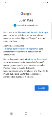 Pulsa Acepto y sigue las indicaciones de la pantalla para seleccionar los ajustes de tu cuenta de Google.