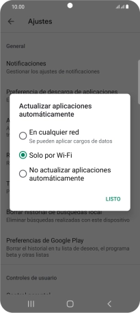 Para activar la actualización automática de apps a través de Wi-Fi, pulsa Solo por Wi-Fi.