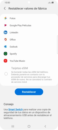 Pulsa Restablecer valores de fábrica.
