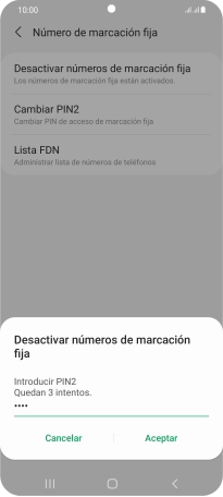 Pulsa Desactivar números de marcación fija.