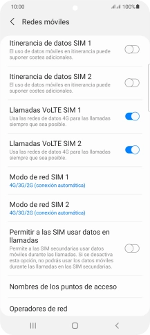 Pulsa el indicador junto a "Itinerancia de datos ‹SIM›" para activar o desactivar la función.