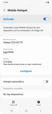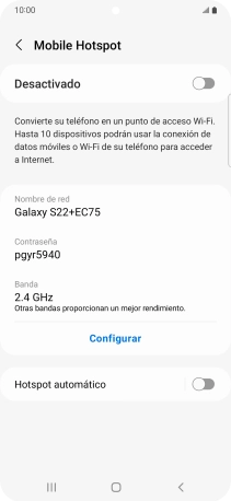 Pulsa el indicador bajo "Mobile Hotspot" para activar la función.
