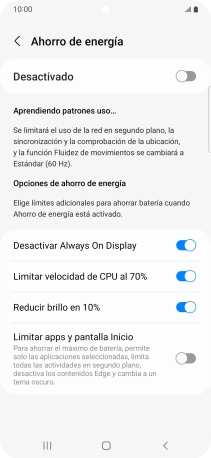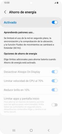 Pulsa el indicador bajo "Ahorro de energía" para activar la función.