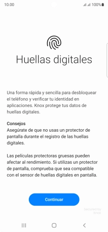 Sigue las indicaciones de la pantalla para crear una huella digital como código de seguridad.