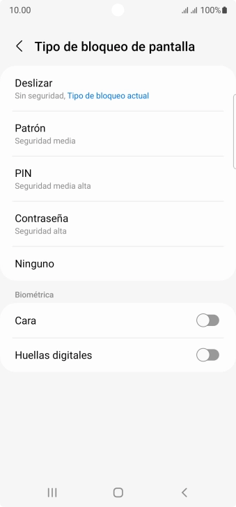 Pulsa Tipo de bloqueo de pantalla e introduce el código de seguridad extra que has creado anteriormente.