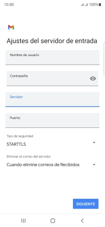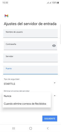 Pulsa Cuando elimine correos de Recibidos para eliminar los correos electrónicos del servidor cuando los borras del teléfono.