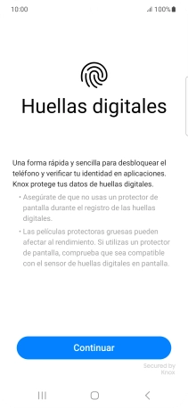 Sigue las indicaciones de la pantalla para crear una huella digital como código de seguridad.