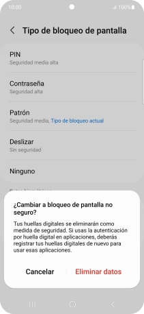 Pulsa Tipo de bloqueo de pantalla e introduce el código de seguridad extra que has creado anteriormente.