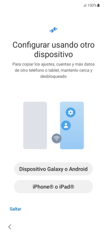 Pulsa la opción deseada para transferir contenido desde otro dispositivo y pulsa Saltar.