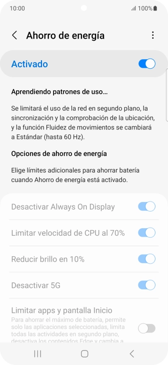 Pulsa el indicador bajo "Ahorro de energía" para activar la función.