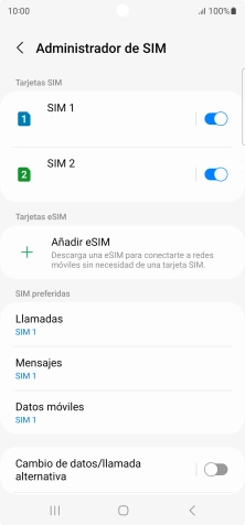 Pulsa el indicador para activar o desactivar el uso de la tarjeta SIM.