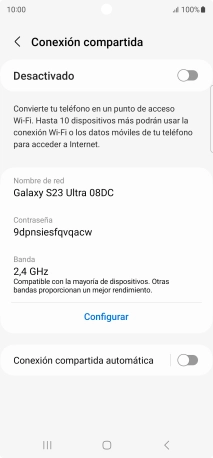 Pulsa el indicador bajo "Conexión compartida" para activar la función.